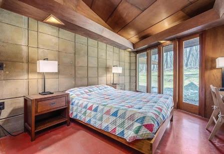 It comprises 1,671 square feet on an approximately 1-acre wooded lot. The house itself has an unusual shape consisting of intersecting triangles, a layout Wright referred to as “experimental” when presenting the plans to the McCartneys, according to writings by Helen McCartney published by the Frank Lloyd Wright Foundation.