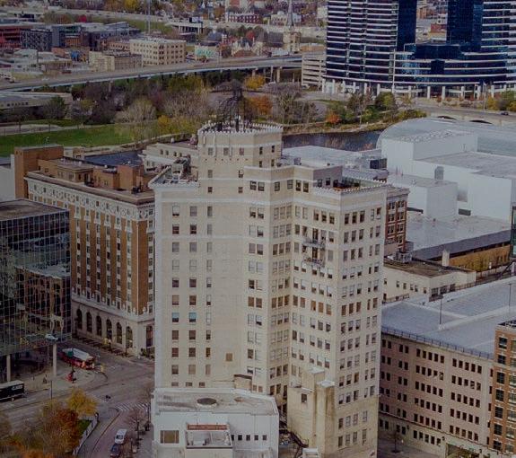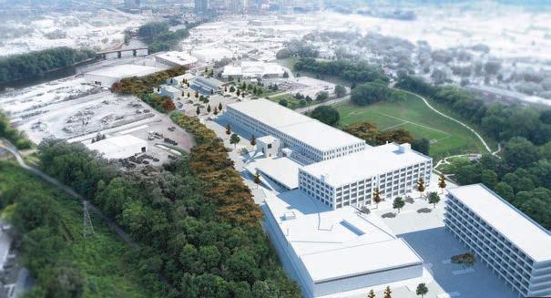 A Lansing-based developer wants to repurpose a vacant ofce and “sea of asphalt” into a mixed-use residential and commercial project connecting downtown Grand Rapids and Heritage Hill.