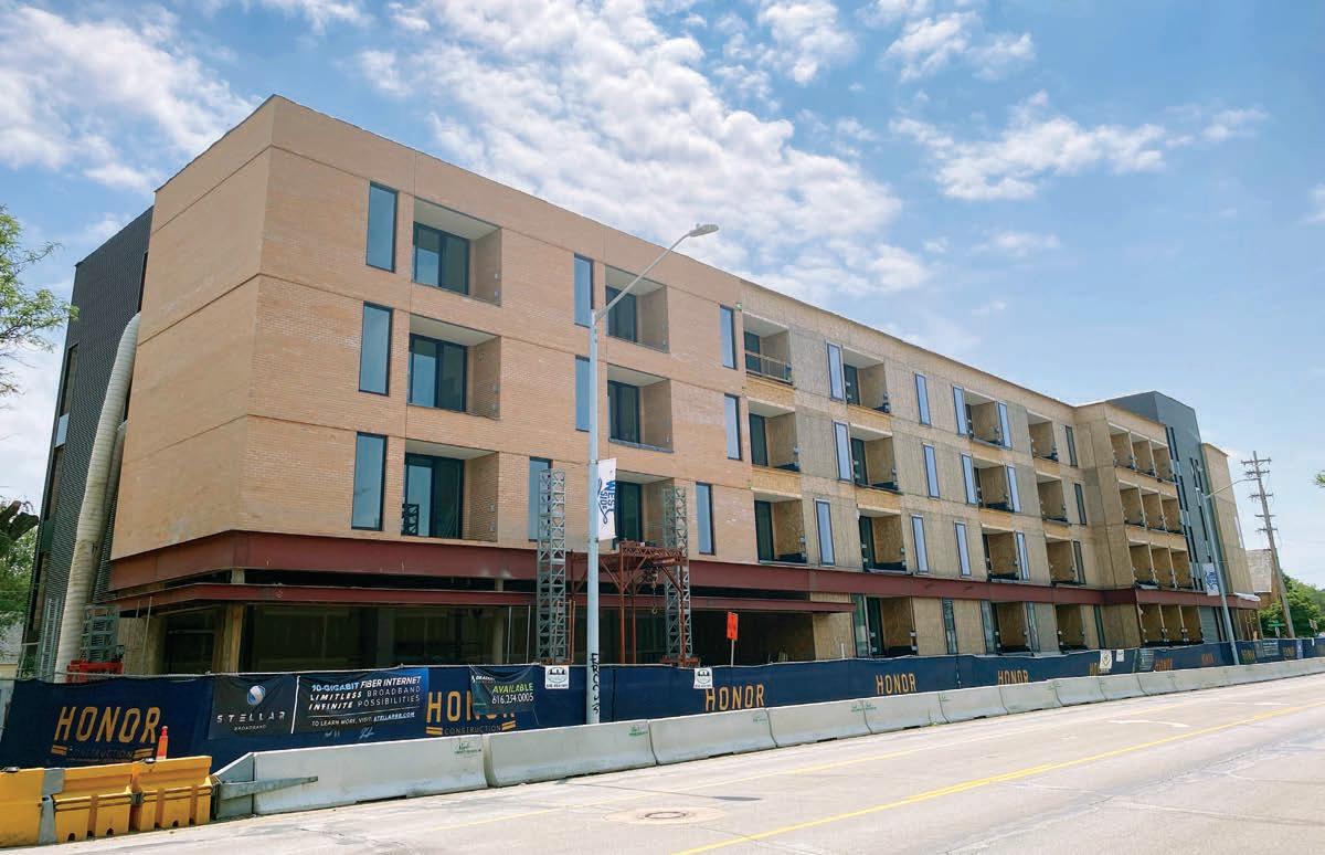 The mixed-use Victory on Leonard project under construction on Grand Rapids’ west side includes plans for 120 apartments. KAtE CARLsON