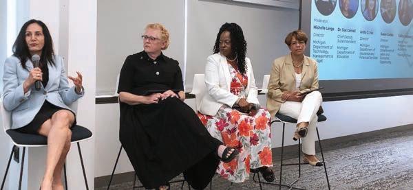 Participating in a presentation on the updated career outlook were, from left: Anita Fox, director of the Michigan Department of Insurance and Financial Services; Susan Corbin, director of the Michigan Department of Labor and Economic Opportunity; TaRita Johnson, senior vice president of talent and diversity at The Right Place Inc.; and Michigan Department of Education Chief Deputy Superintendent Sue Carnell. | MARK sANCHEZ