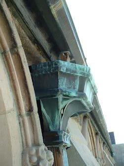 In 2002 Cram and Ferguson worked with St. Paul’s to prepare and submit an application for a Massachusetts Historical Commission preservation matching grant for replacement of the slate and copper roofs. Using the original drawings new gutters, leader boxes and downspouts matching the original design were installed and the original built-in gutter at the aisle roofs was restored. The Exterior Restoration Phase I was funded and completed in 2004.