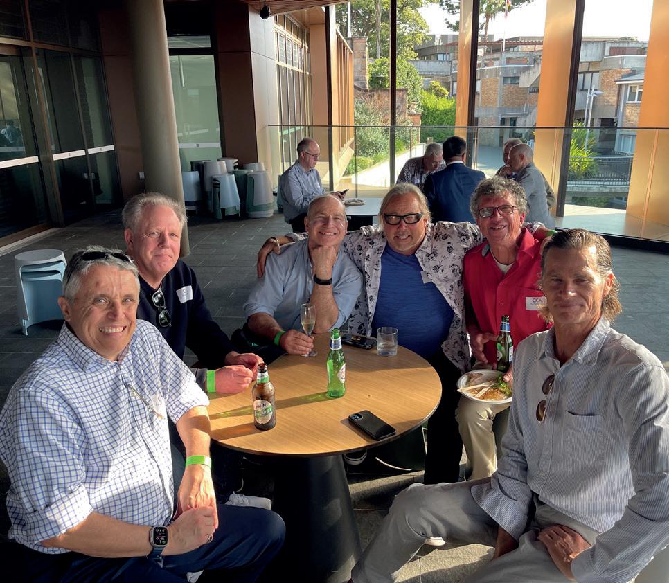 end of the spectrum we had strong appearances by James Hirschfield OC 1957, along with Nick Beattie and Peter Doran OCs 1959. Peter with a massive effort from the 83 year old, hoping on his train bound for London at 2pm which got stuck on the tracks and he entered the club at 9pm sporting his Wakehurst House tie and thirsty for a cold one. Sean Tai OC 1986 showed his commitment to the Red White and Blue flying in from Spain to join the crew being assembled.