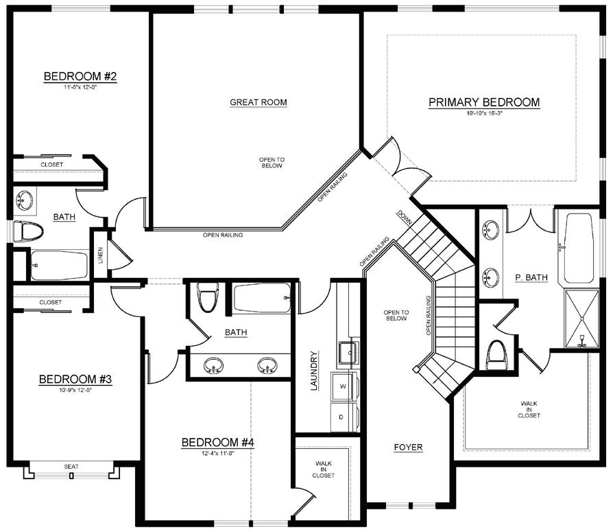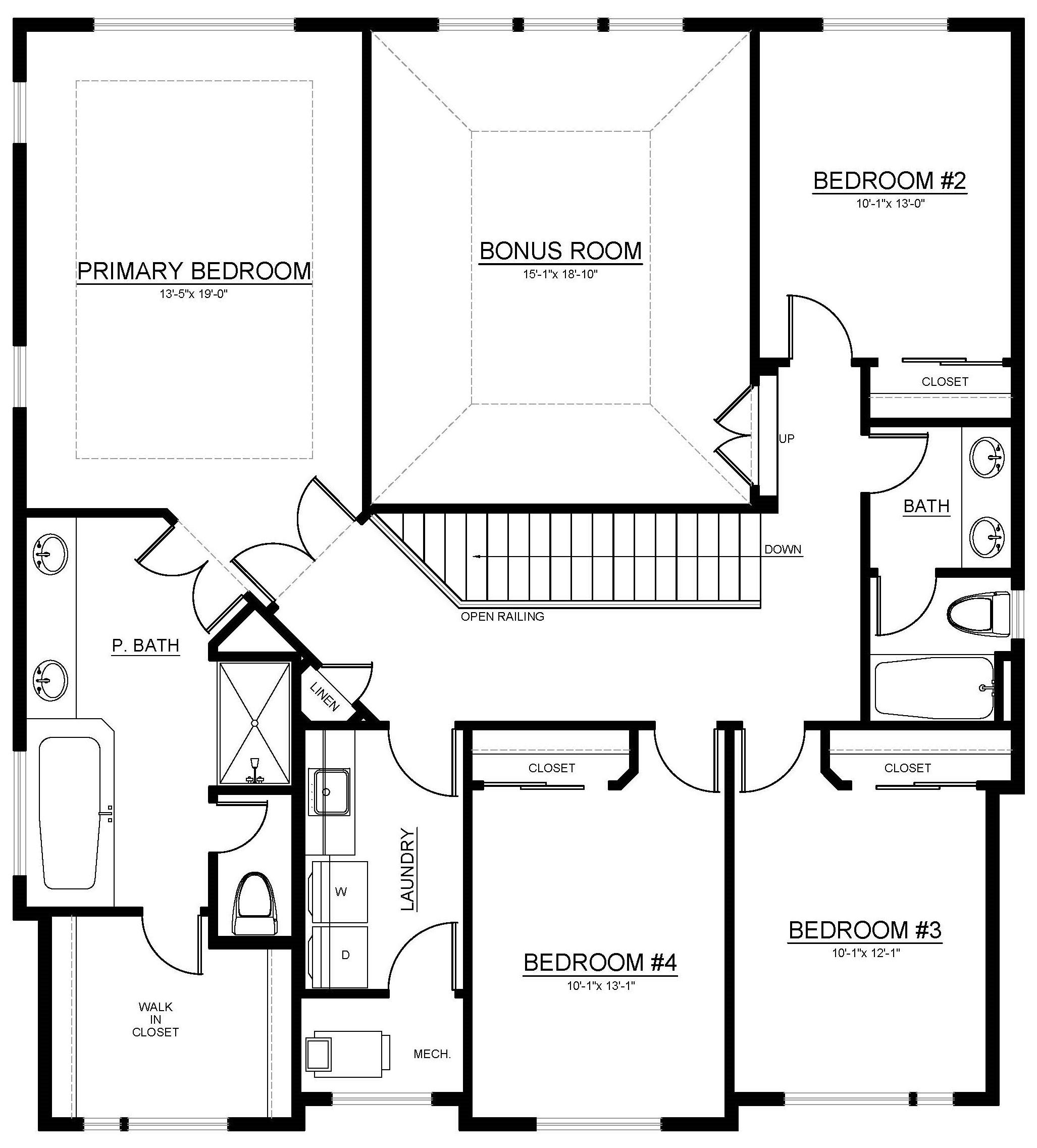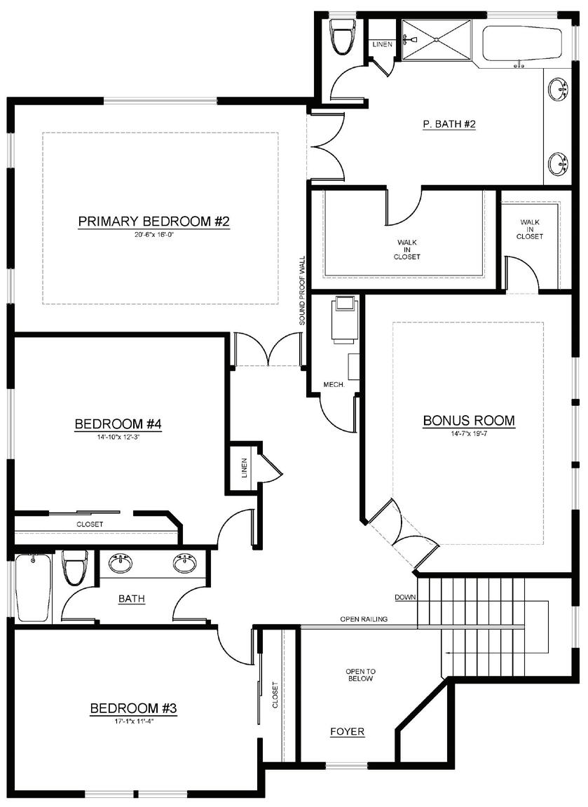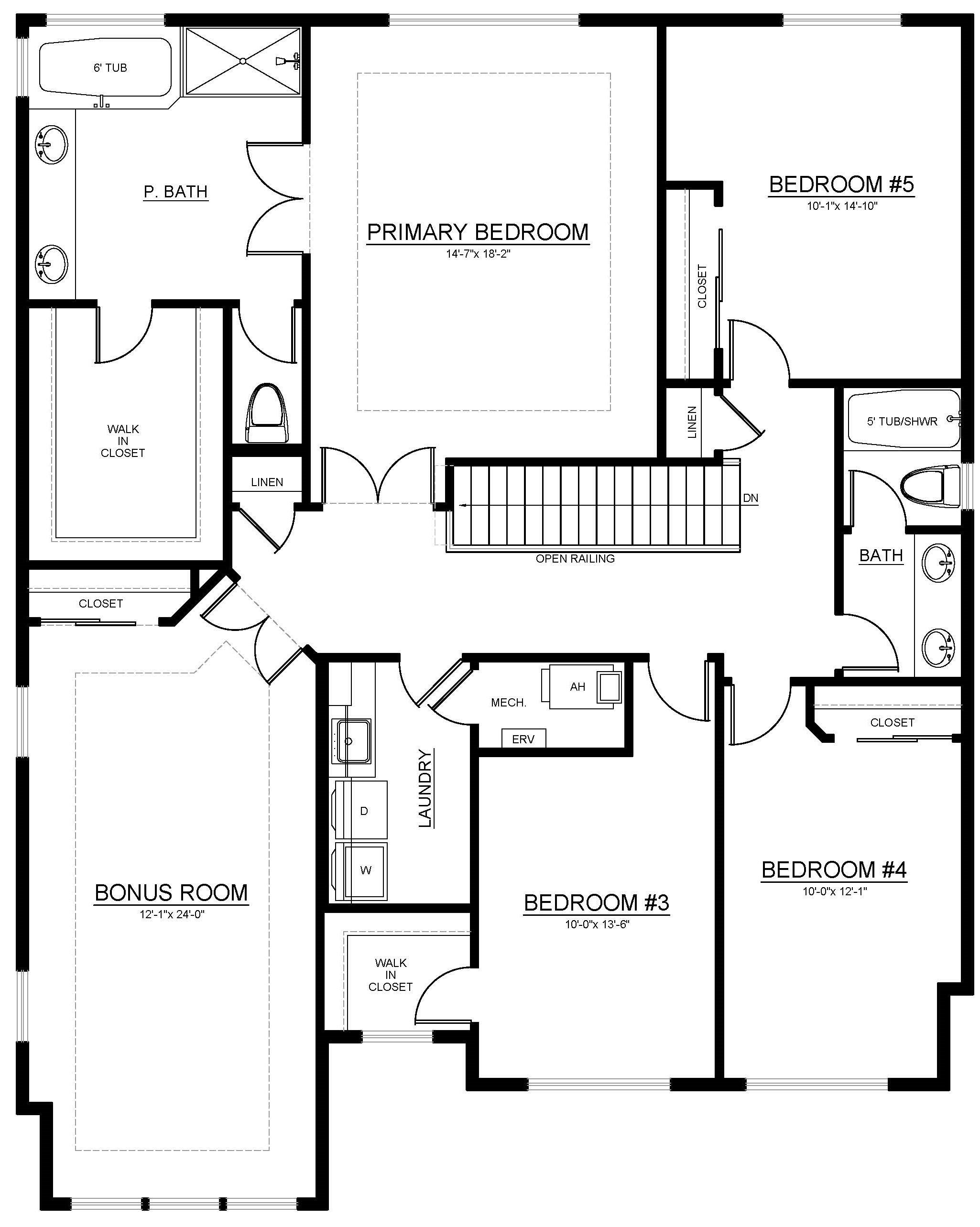 • 6’ soaking tub in primary bath