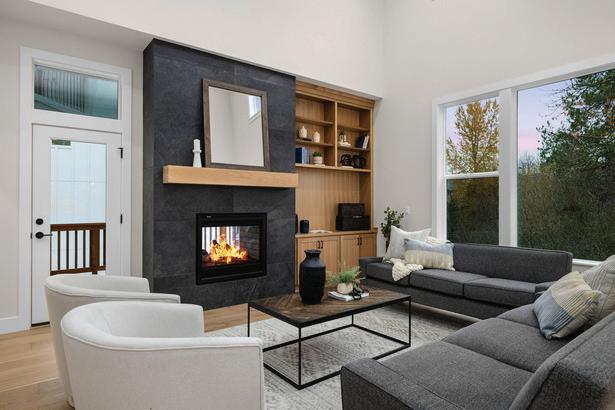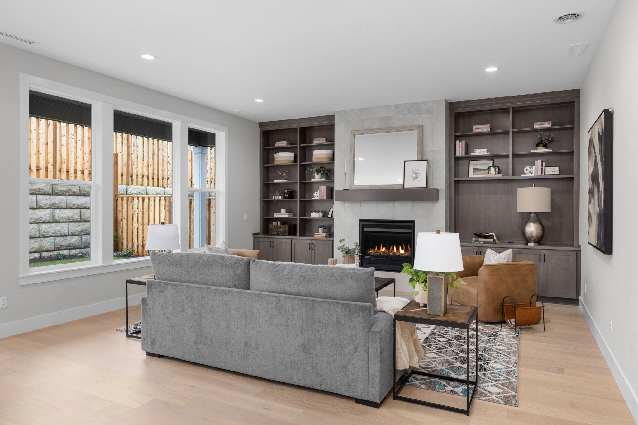 • Built-ins with tile face gas fireplace (per plan)