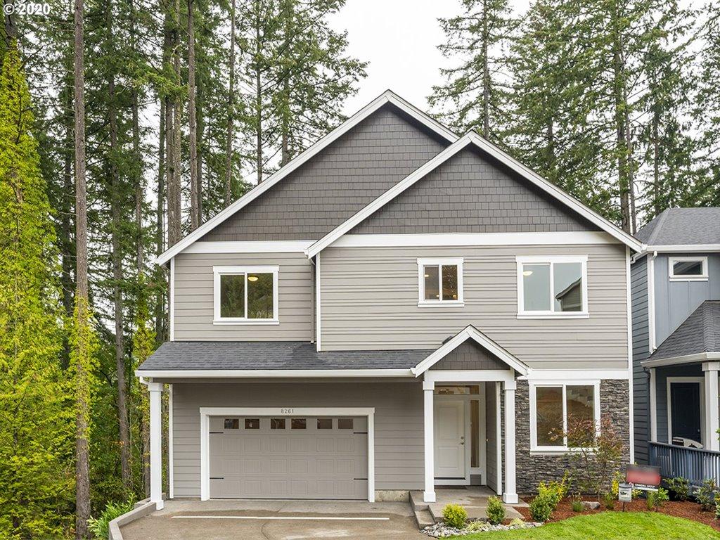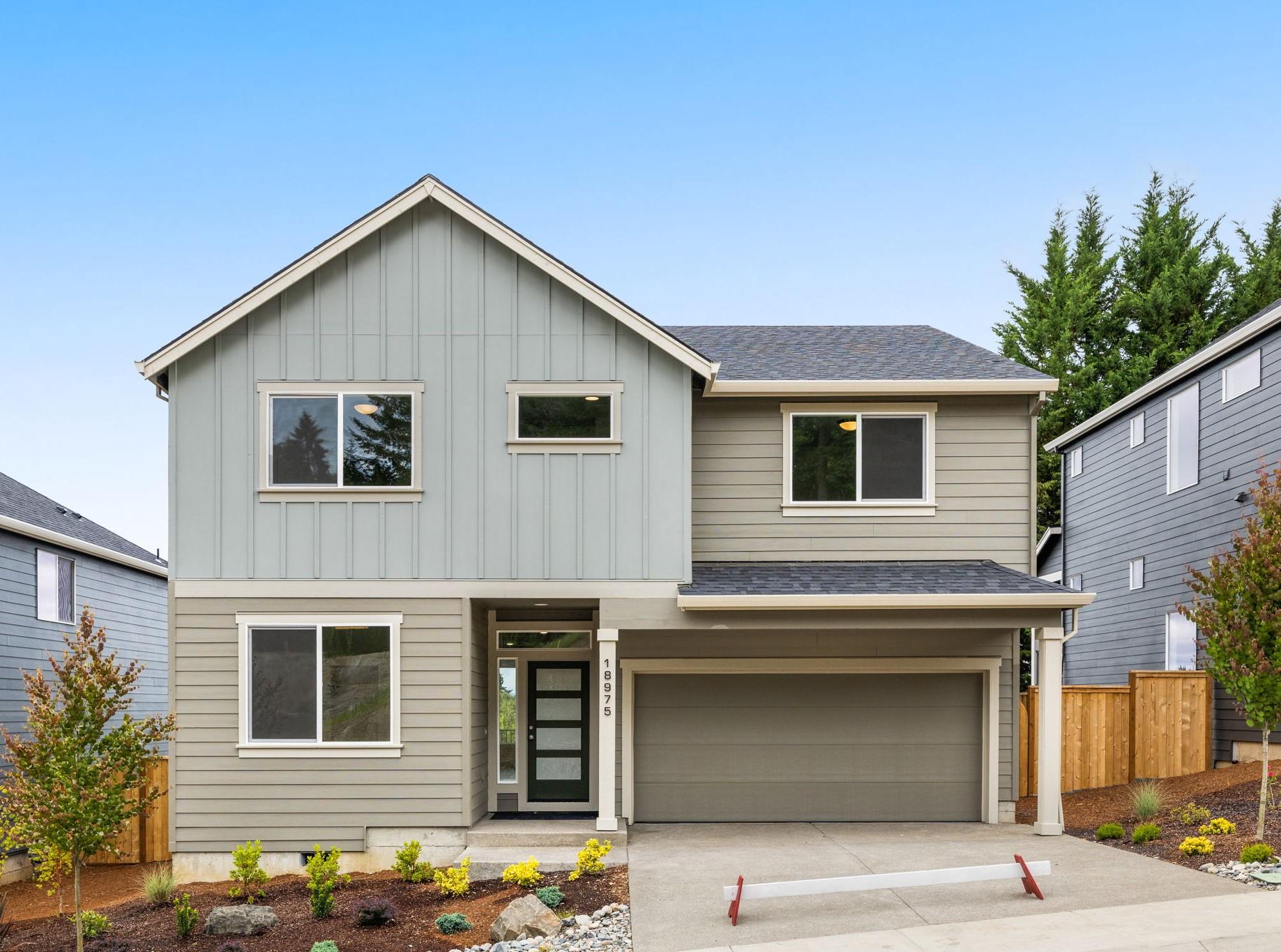 Front Yard Landscaping: Street Tree, Shrubs, Barkdust and River Rock accents