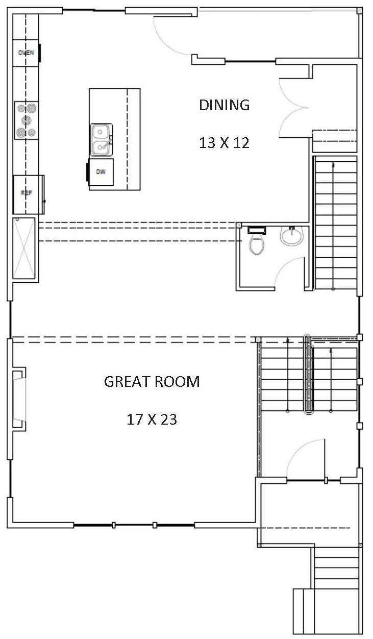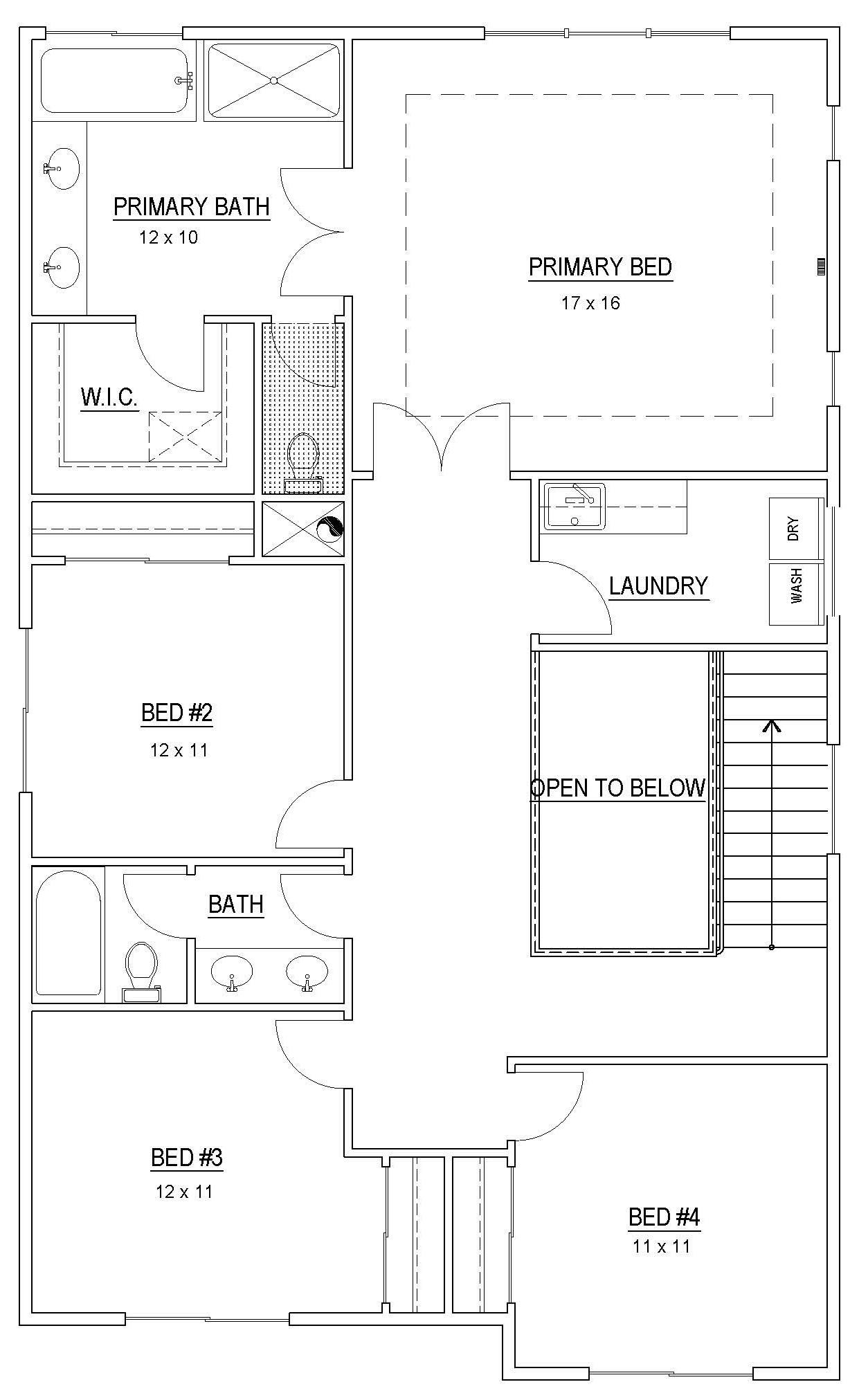 Stairs: 1st Floor Open Handrail with Painted 2” Wood Balusters and Handrail (Per Plan)