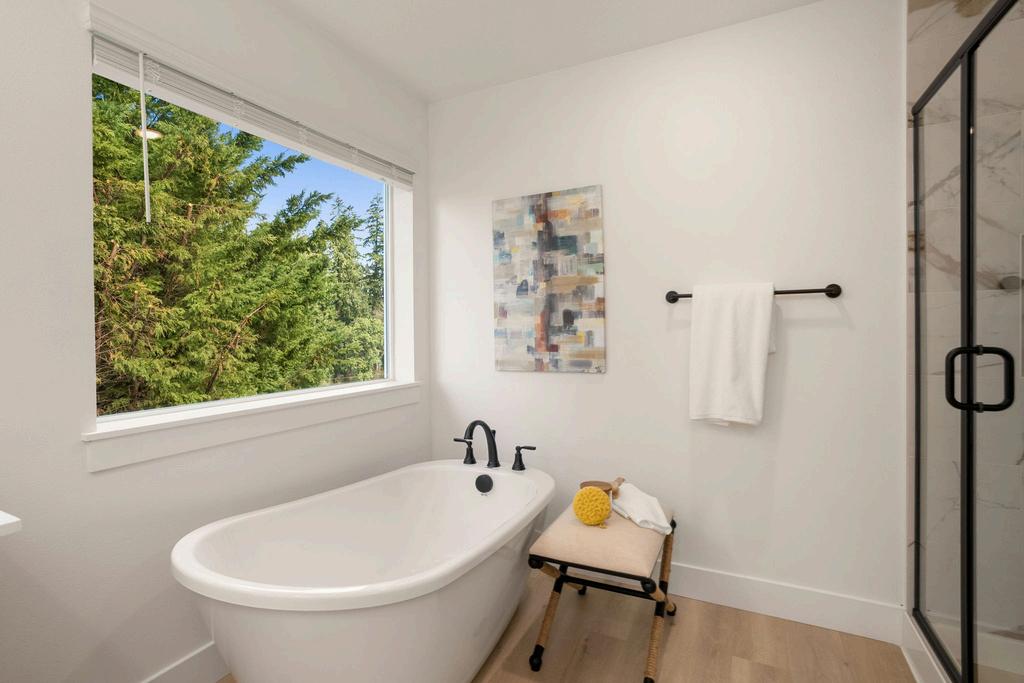 Primary Suite and Main Floor Bathrooms: Fiberglass Shower and Maax Sax Freestanding Tub or 6'