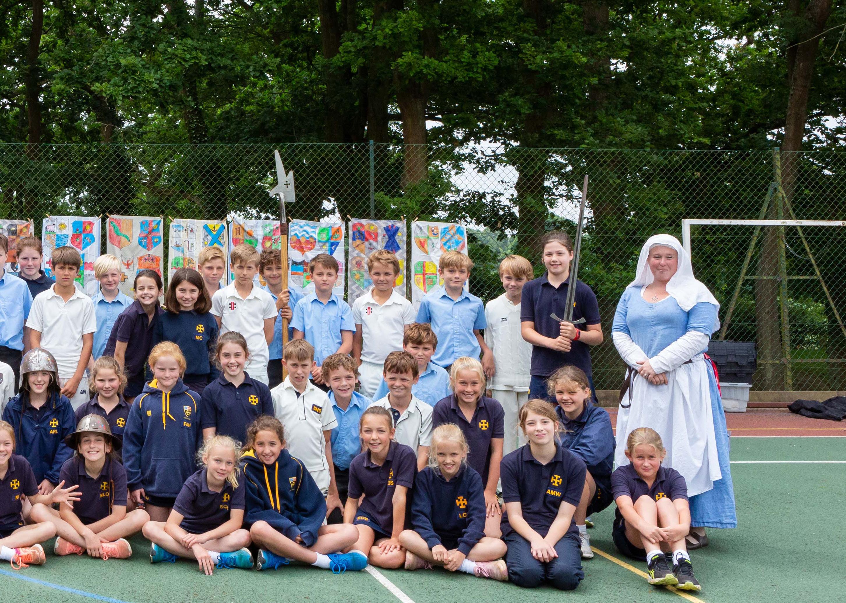 Form 4 were joined by Lord Nick and Lady Lucy from Loxwood Joust, who told them all about being a medieval knight, introduced them to real weapons and even taught Mr Brewer to sword fight! The pupils designed individual coats of arms following lessons on heraldry. These were displayed at the Loxwood Joust in August.