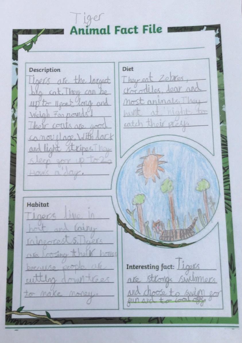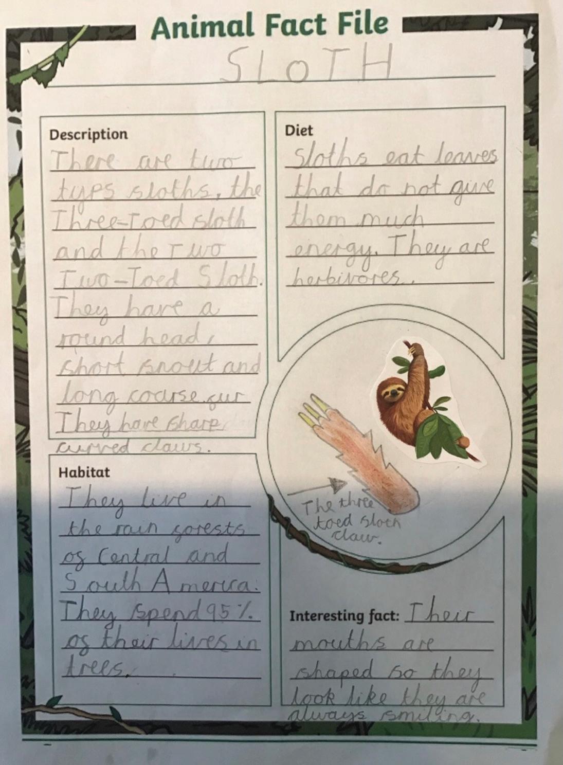 During lockdown, Form 1 studied the Amazon Rainforest as part of their Humanities topic. Tasks included researching facts about different animals and learning about plant adaptation. They also found out more about deforestation.