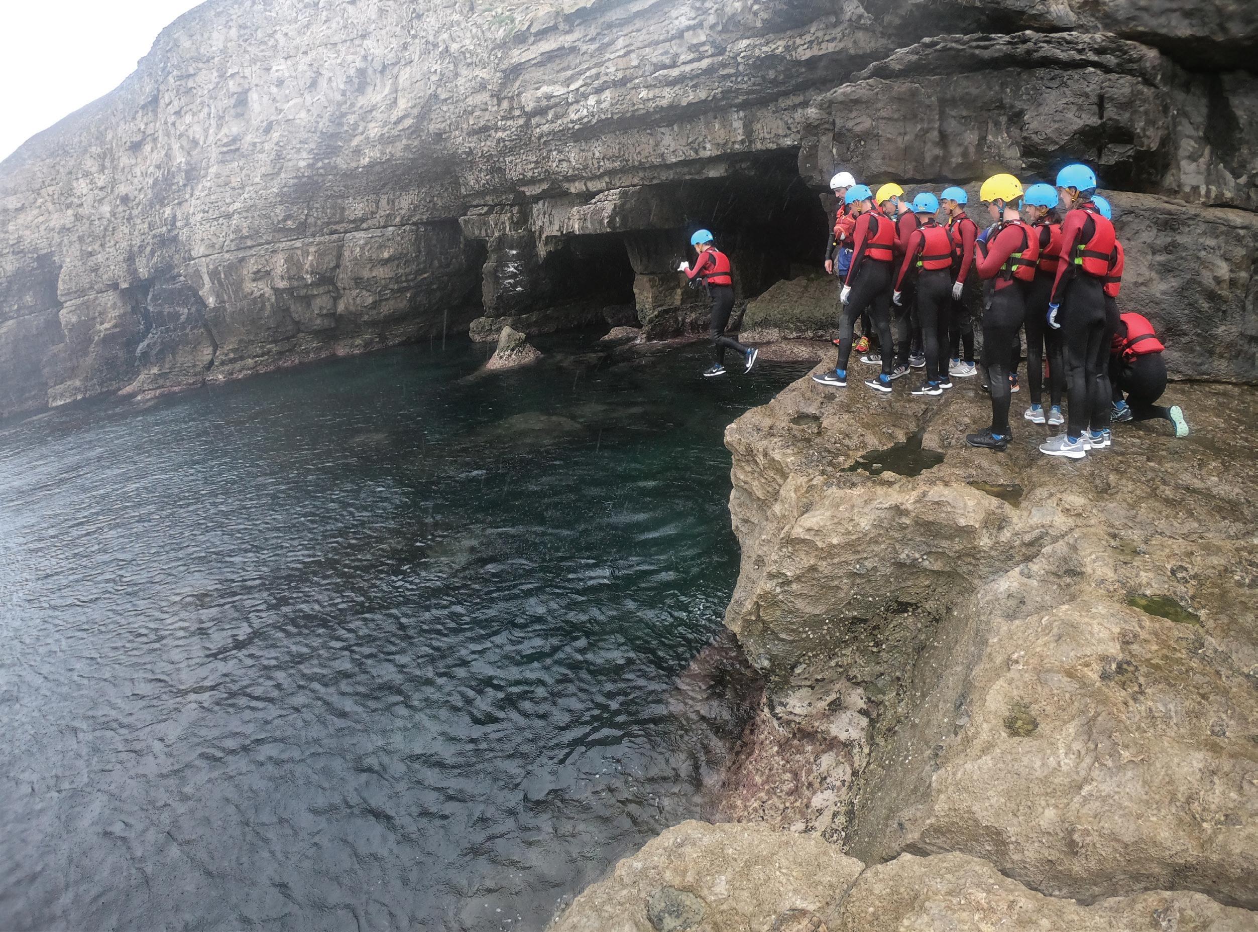 Firstly, there were lots of amazing activities. The inflatable assault course was a refreshing break after the coach journey. Coasteering was a highlight with lots of water adventures. Sea kayaking in Swanage Harbour was really fun and totally hilarious. Bushcraft took place in a dappled glade, where we learnt to build fires, carve wood and shoot arrows.