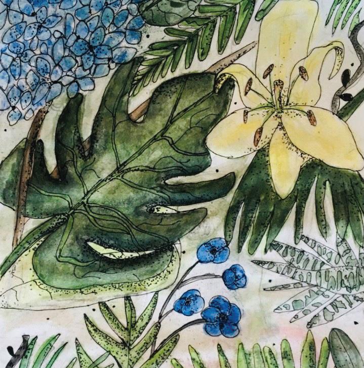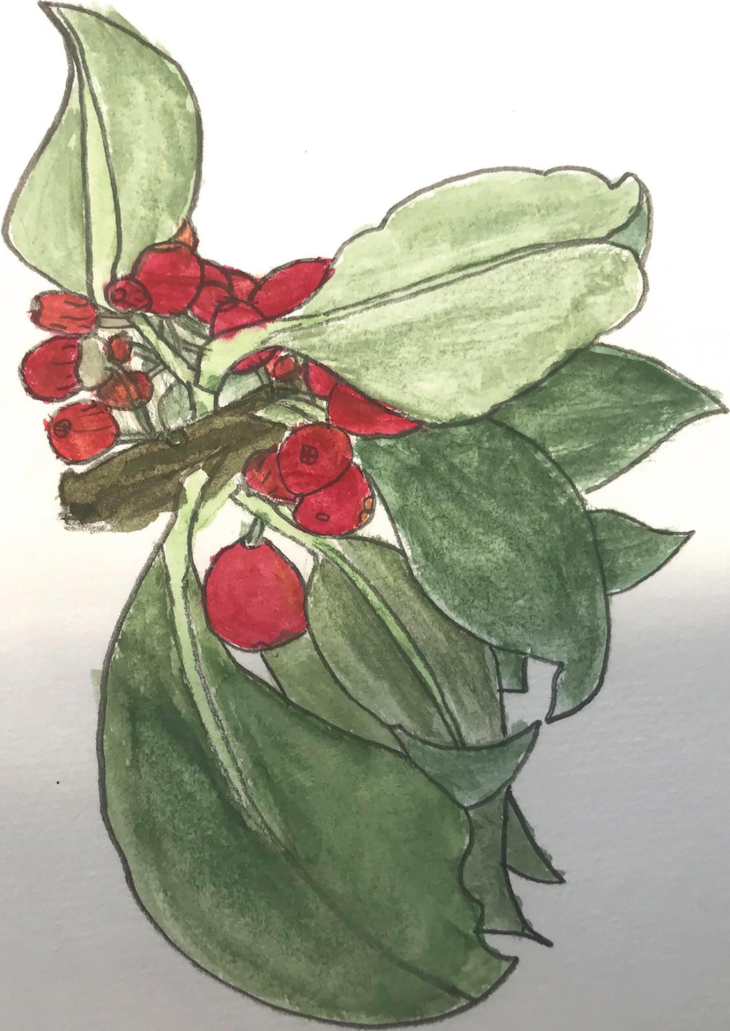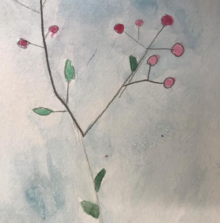 The pen and wash leaves was done as a sketchbook piece by a member of the DaVinci Club.