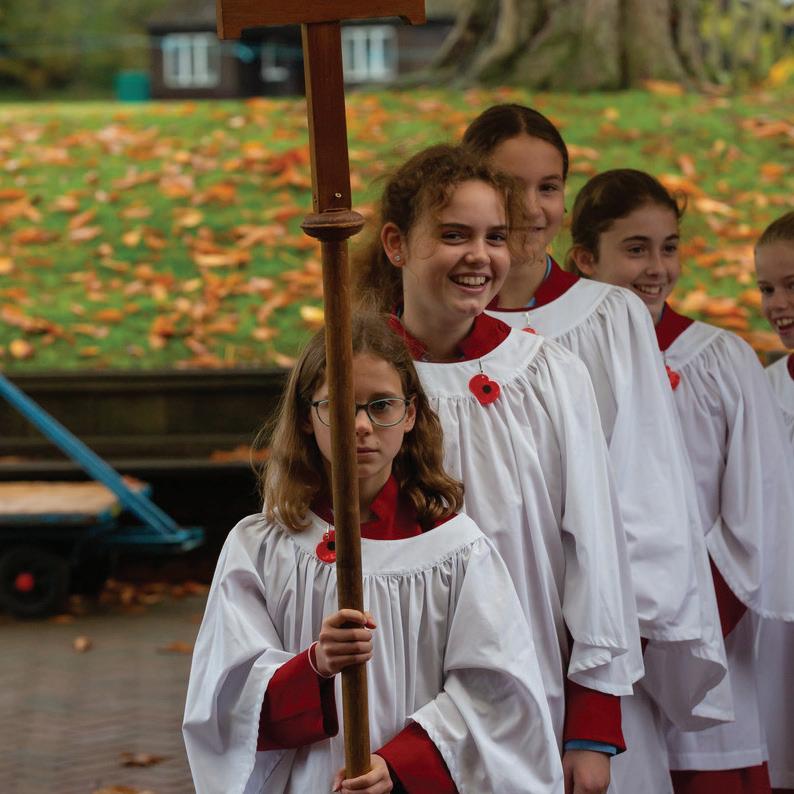 The Form 6 girls’ choir led the Remembrance Service with Henry P playing ‘The Last Post’ and ‘Reveille’.