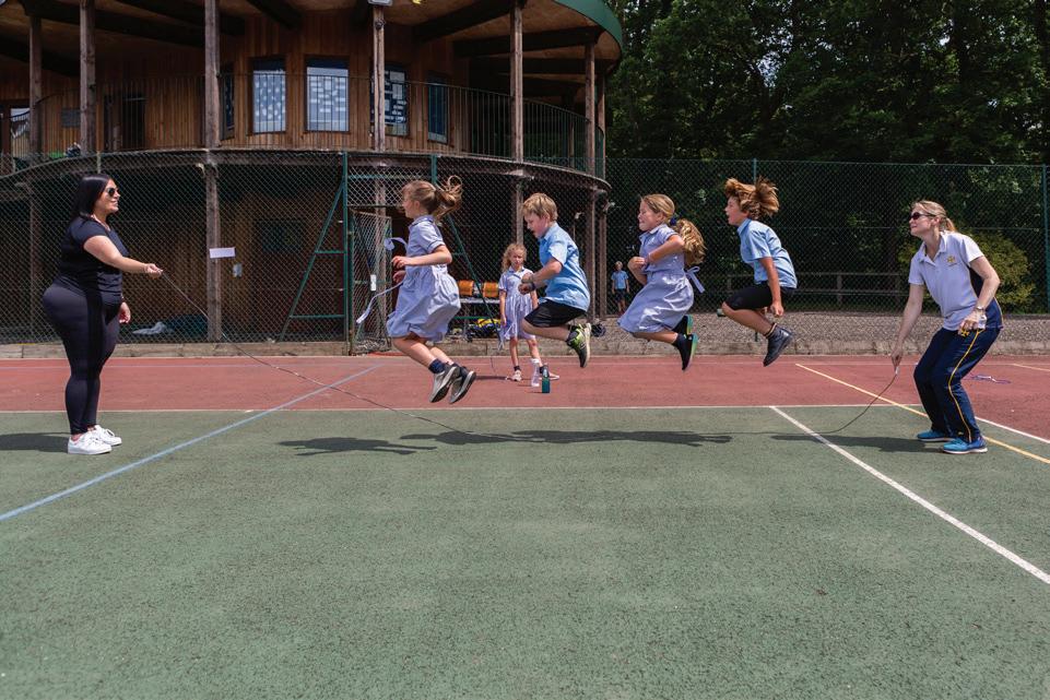 They were finding out the perimeter and area of the 5-a-side; identifying 2-D shapes on the tennis courts and tallying di erent numbers of sta cars in the car park!