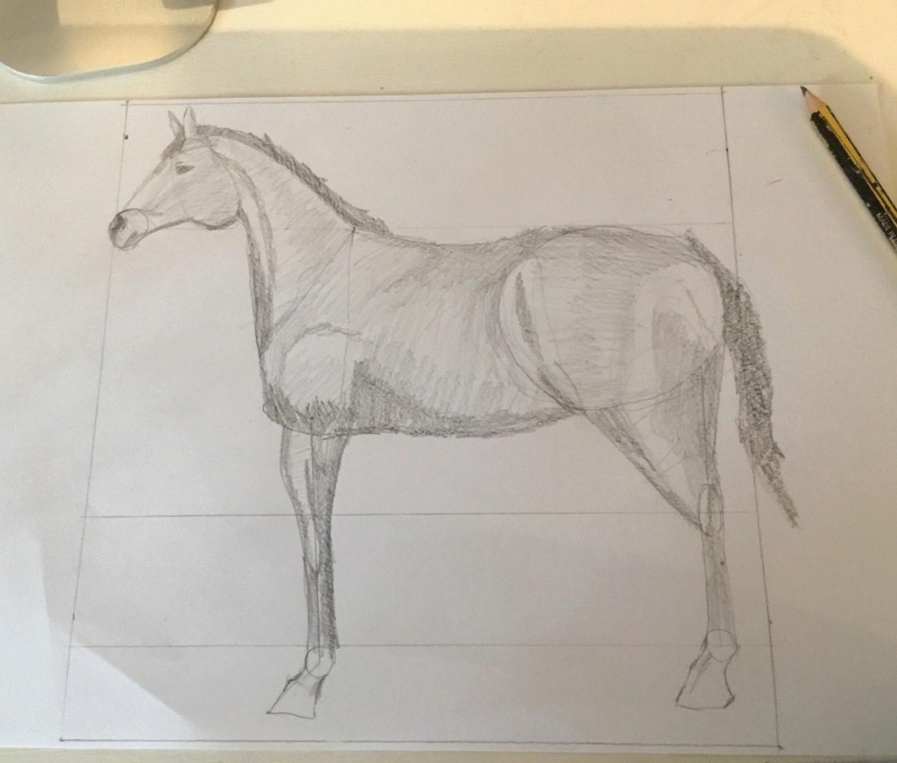 The horse drawing was created by following my YouTube instruction videos. It was interesting to note an increase in drawing quality as a result of pupils working by themselves at home instead of being distracted by others in the classroom.