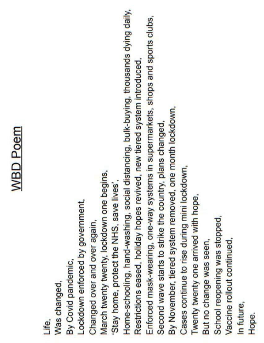 World Book Day 2021 was an online event for the whole school to celebrate books and reading. The event was divided into four themes: