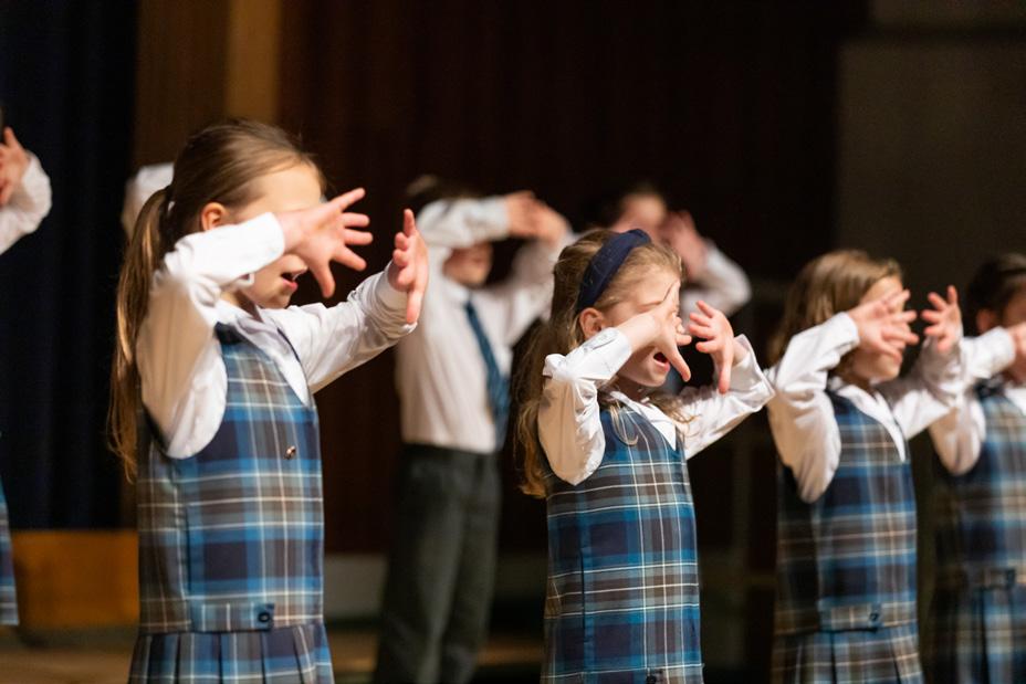 danced with precision and energy and acted with huge enthusiasm to create a colourful and entertaining film. Despite not having a live audience to feed o and respond to, the children showed a huge amount of self-discipline and maturity and rose to the challenge.