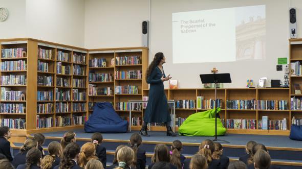 We welcomed author Fiorella De Maria to our school for a special workshop in honour of Holocaust Memorial Day. Hosted in the library, she delivered an insightful talk to Year 7 on St. Maximilian Kolbe. The visit was a wonderful opportunity for pupils to learn, ask questions, and even meet the author to explore her books.