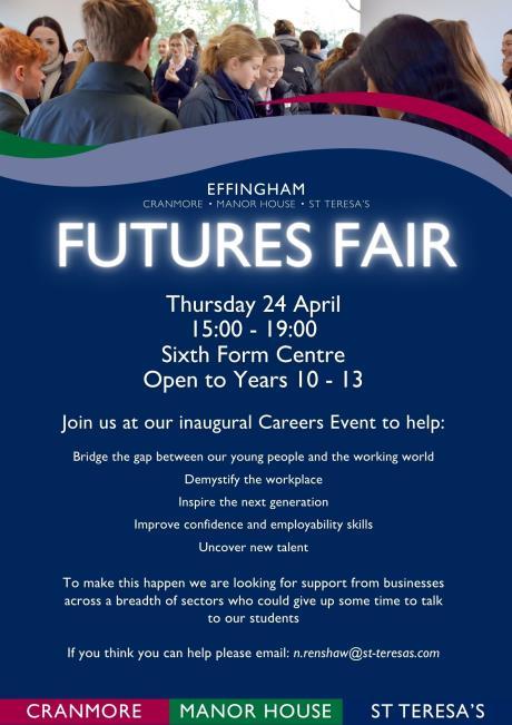 In April we will be hosting our Futures Fair! This is an exciting event open to all across the Trust. You will also have received a New Careers newsletter in your weekly communications!