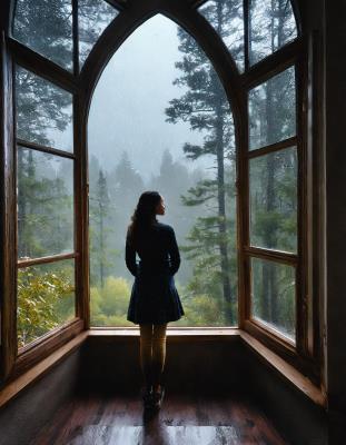 Out of the eye of the storm, roared a mighty beast. Flaming pupils of inferno soared across the blazing tempest, teeth like swords cut through the icy winds like sharp eagle talons. For a moment all was still. The howl of the sky-beast stopped, its talons merely grazing the battling ocean below. A wing of golden light sweeps the clouds, like the wing of an angel but lighter, softer and brighter and the world falls silent, the little pieces of the storm clicking together, slowly forming a much quieter, stubborn whoosh of wind to gently rattle the trees.“She sees it come.” The old one said. “The girl who waits at the window.”