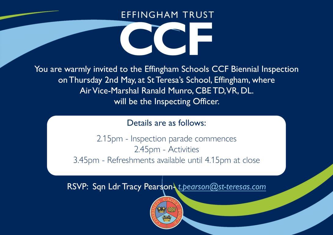 Please email m.stephens@st-teresas.com if you wish your daughter to attend the camp. If we are oversubscribed, we will take cadets based on their attendance at CCF.