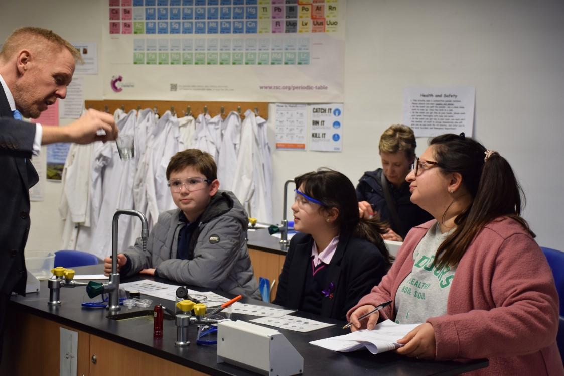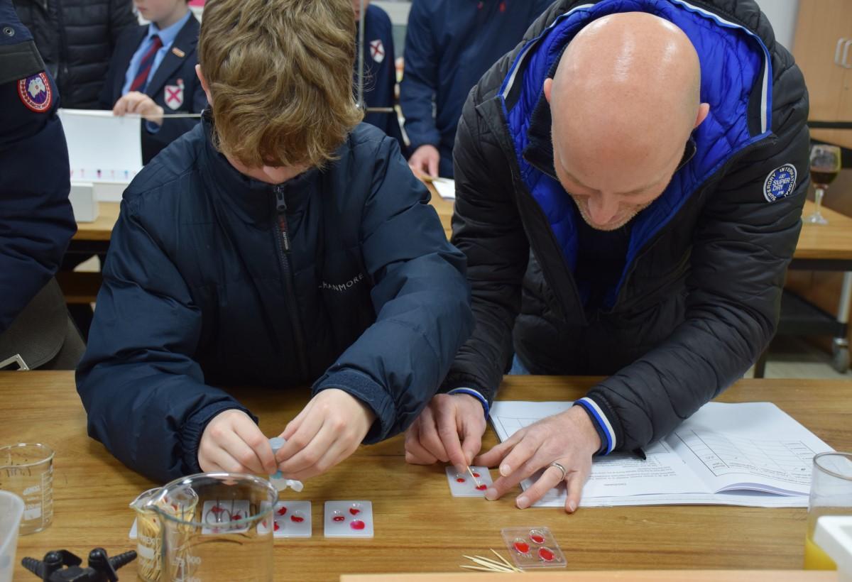 The science department held a joint CSI family event at St Teresa's, inviting Year 8 families from both St Teresa's and Cranmore. They had to solve the burglary of the Epsom Derby trophy taken from Dr McShane's office. Examining blood, fingerprints, fibres and fluid from the crime scene they had to find the culprit.