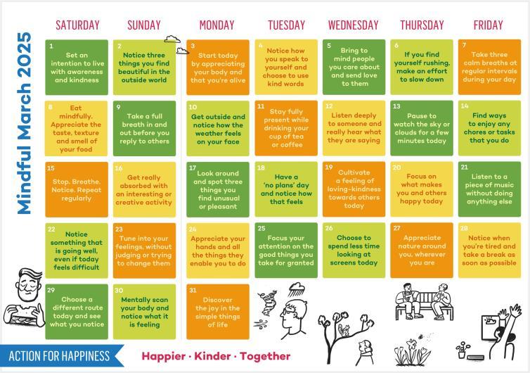 THIS is why following something like the Action for Happiness monthly calendar is so helpful.