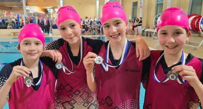 On Thursday, St Teresa’s had the honour of hosting the inaugural Effingham Trust Gala, a landmark event that brought together the U9-U11 squads from St Teresa’s, Cranmore, and Manor House. Excitement filled the air as the young swimmers prepared to showcase their skills, with parents enjoying live commentary and music from the amazing Mrs P! With over 90 girls and boys competing across a variety of swim events, the gala was a true celebration of community, teamwork, and determination. After last week's disappointment the Year 6 swimmers showed incredible resilience, bouncing back from their previous gala to get back to winning ways, a testament to their hard work and perseverance. The Year 5 girls fought hard to win some key races, delivering a fantastic squad performance. Their determination and continuous improvement were evident in every event. They have bonded so well as a team, always supporting and pushing each other to be their best. Their team spirit was truly inspiring. A special mention must go to the Cranmore Year 5 team who were outstanding, showcasing impressive swimming skills. Their relay performance, in particular, was flawless, demonstrating precision, speed, and seamless teamwork. Meanwhile, the Year 4s continue to go from strength to strength, winning some incredibly close races. Their progress since the start of the season has been remarkable, and with further coaching, the potential for this team is truly exciting.