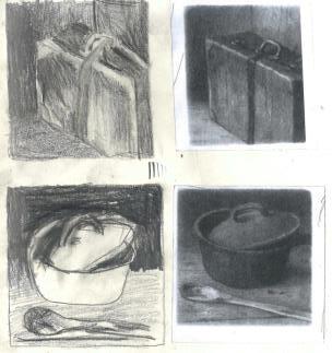 Year 6 have completed a series of drawings that convey how a child being evacuated during WW2 may have felt. They initially looked at the work of Shaun Tan, "The Arrival," to see how he captured small moments such as waking up, eating a final meal, packing a bag, or two clenched hands. Their "comic strips" contain a range of tonal marks, and there have been some beautiful studies that achieve a very high standard of drawing.