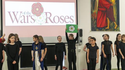 Year 5KH treated their parents, and the school, to a delightfully humorous journey through the Tudor timeline in their assembly on Wednesday afternoon. We had the Battle of Bosworth field, the Life and Death of the Tudor Monarchy and the Reign of Henry VIII. There were thrilling songs, snappy well-timed lines and dramatic deaths. My congratulations to the girls of 5KH, my thanks to the parents for attending and to Mrs Hilder and Mrs Doman for their support in making the assembly so memorable and fun.