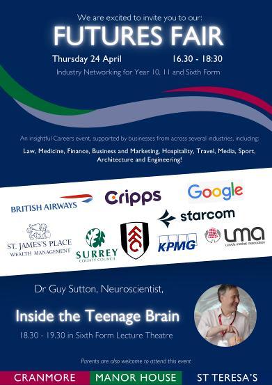 Please find attached the invite for our Effingham Trust Futures Fair on Thursday 24th April. This event, designed for our pupils in Year 10, 11 and Sixth Form will be an opportunity for them to network with businesses from across a breadth of sectors and give them a chance to understand career paths available to them, as well as the skills needed to thrive in the modern workplace.