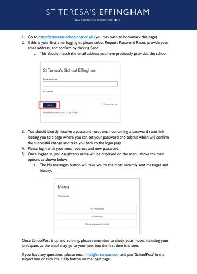 To log in please go to: https://stteresas.schoolpost.co.uk/