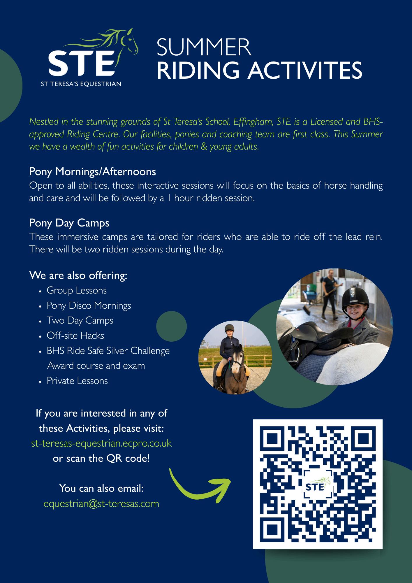 Find out more information by scrolling down or contacting equestrian@st-teresas com