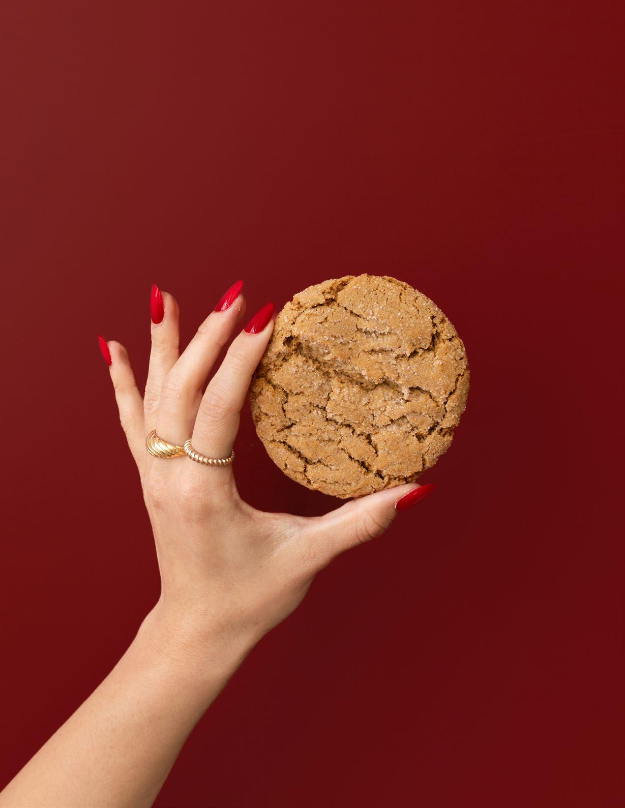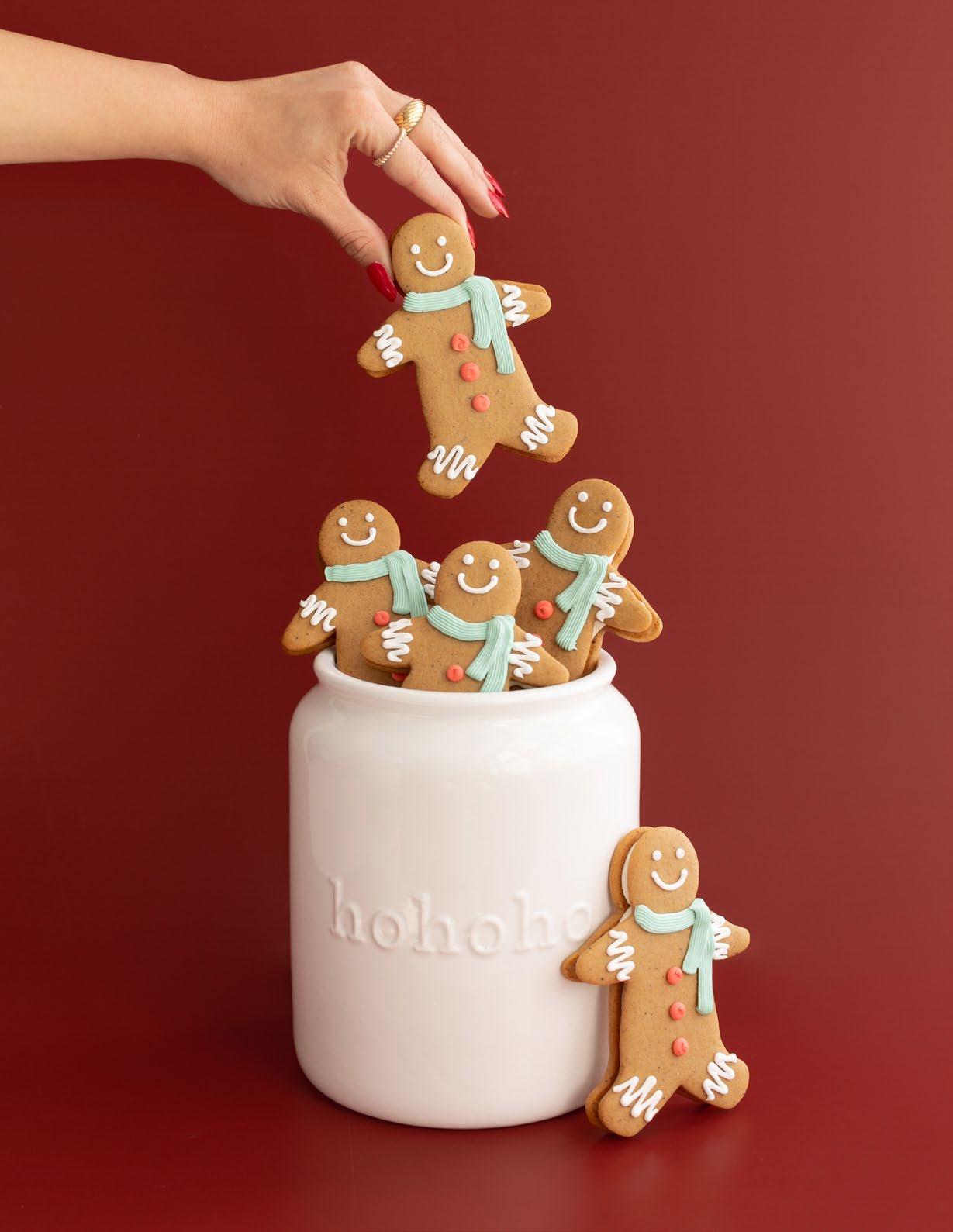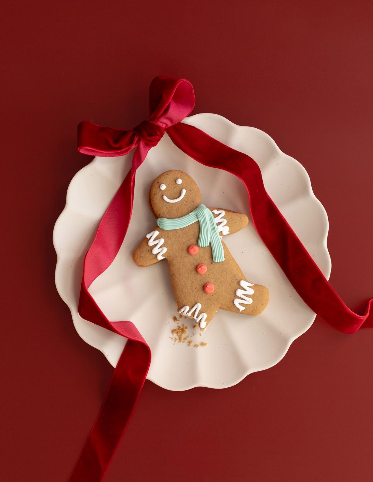 A hand decorated gingerbread cookie, sandwiched with vanilla buttercream and individually packaged.
