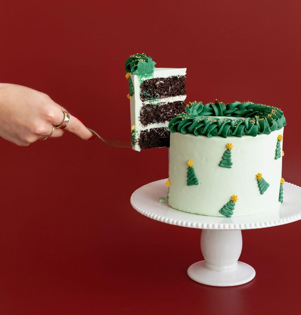 Celebrate the season in style! Our Tree cake showcases your favorite cake flavour, adorned with festive trees crafted from creamy vanilla buttercream.