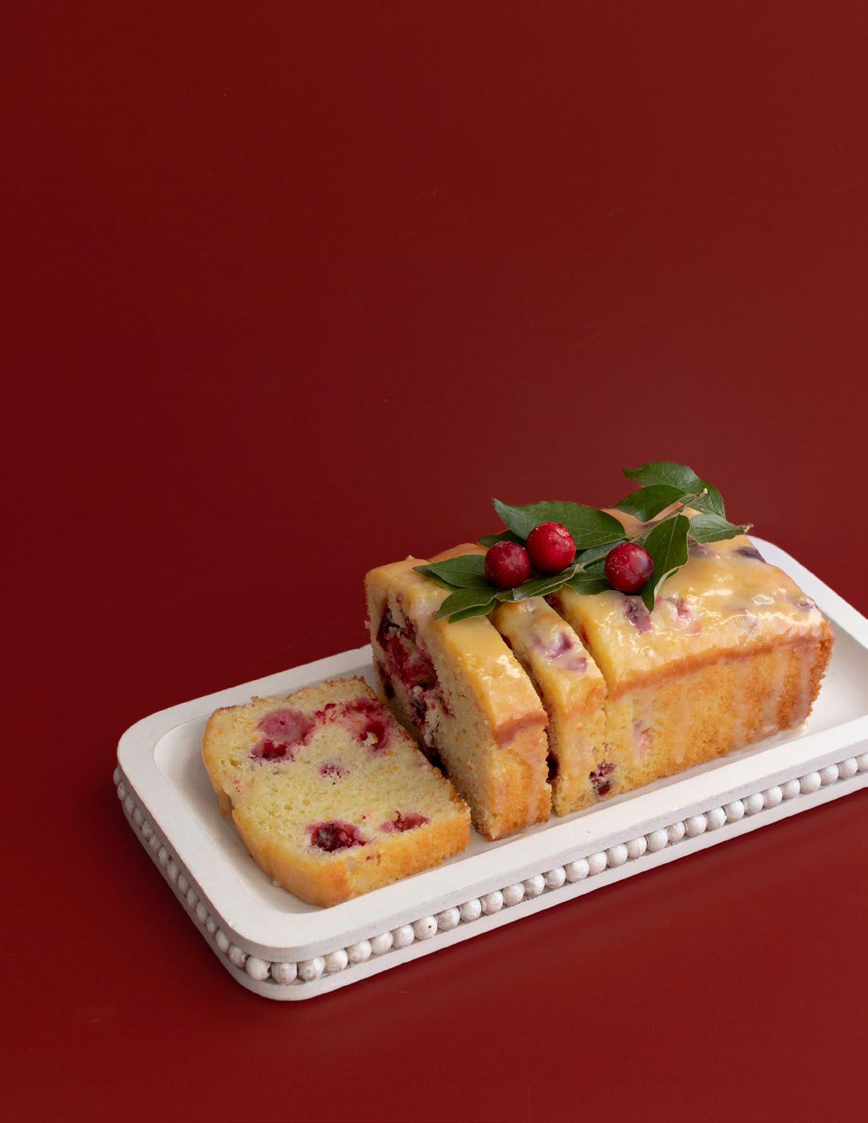 This scrumptious loaf is loaded with tangy cranberries and zesty orange, all topped with a rich farmer’s butter glaze. $18.00 (8-10 slices per loaf)