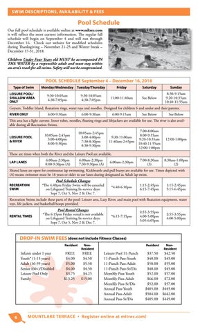 POOL SCHEDULE September 4 – December 16, 2018 Type of Swim LEISURE POOL/ SHALLOW AREA ONLY