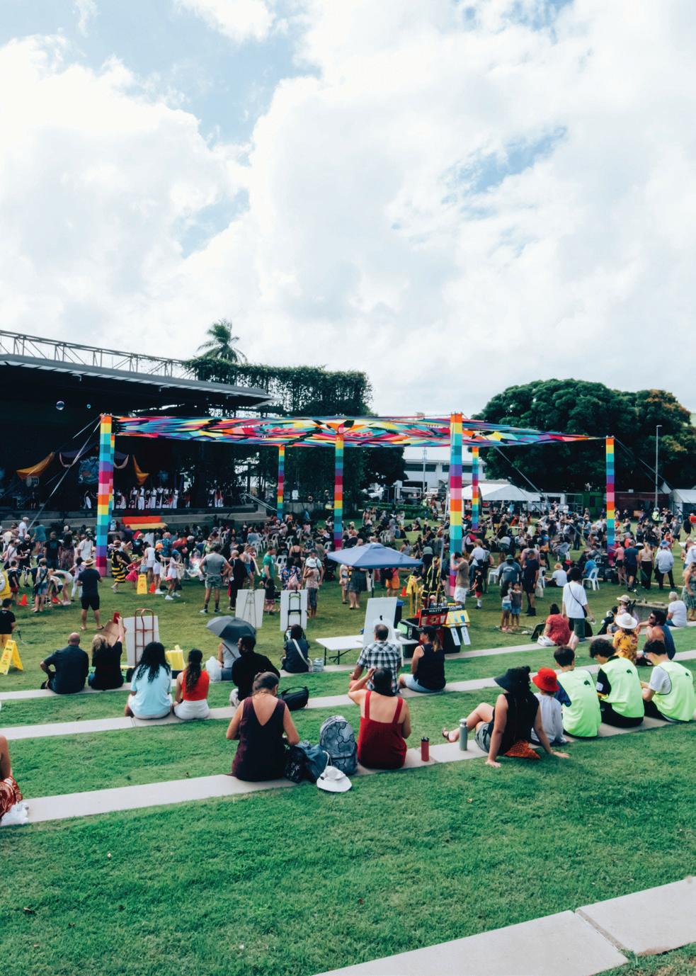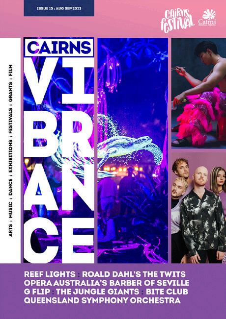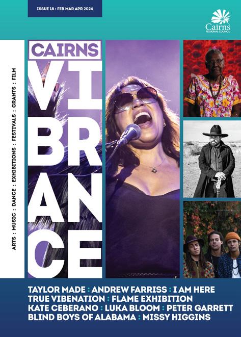 43 BEN LEE Your Cairns Arts & Culture Cheat Sheet 6 Cairns Children’s Festival 8 Spaces for Artists 18 Receive>Respond 19 Culture Weekender: Cairns City 20 Green Room Sessions 21 The Sunshine Club 22 Cairns Libraries 24 Cairns Festival 25 Unveiling Yarrabah Arts & Cultural Centre’s Charcoal Exhibition 26 Regional Arts Development Fund (RADF) RADF Grant opportunities 28 Discover the faces behind the RADF Committee 29 Illuminating Insights: A Spotlight on Sound and Lighting Pathways 30 Dream Big: Unleashing Creativity 32 Flame.Arts: Opportunities to get involved with Cairns Festival 33 Out on the Lawn 34 Understory Film Festival 36 Around the Tanks 37 Volunteer Opportunities 37 EVENTS MAY Artists of the North 2024 | Exhibition 39 Crazy Creatures | Exhibition 39 Emma Donovan 40 Circa: Humans 2.0 40 Jon Cleary & The Absolute Monster Gentlemen 41 Missy Higgins 41 Banff Mountain Film Festival 42 Ceanannas (A Great Home) | Exhibition 42 Ben Lee 43 The One Who Planted Trees 43 Erth’s Shark Dive 44 Sounds Like An Orchestra 44 Ziggy Alberts 45 BABBA 30 Year Anniversary 45 Ecstatic Dance Cairns 46 Charcoal: Yarrabah Arts & Cultural Precinct | Exhibition 46 Making My Mark: Molly Duncan | Exhibition 47 Public Program 47 Receive>Respond | Exhibition 48 Understory Film Festival 2023 Finalists | Exhibition 48 Nazeem Hussain & Bron Lewis 49 Ian Moss 49 Out on the Lawn: Experimental 50