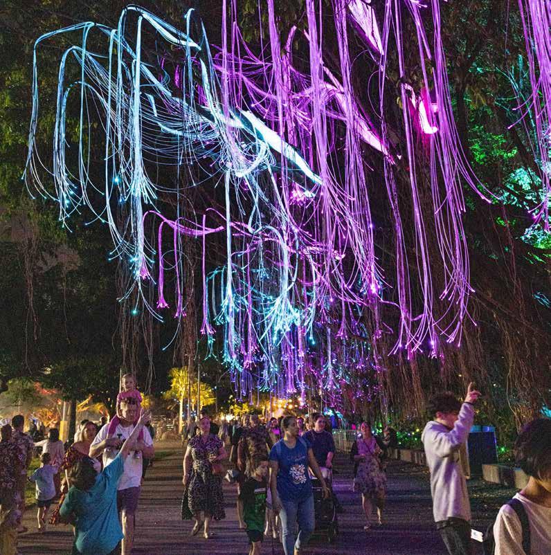 Situated in the same precinct as CPAC, Munro Martin Parklands is the number one outdoor event space in Cairns. Come for a day-time stroll amongst the flowering vines, birds and butterflies, explore the fairy light covered trees at night or experience world-class performers on stage under a tropical night sky.