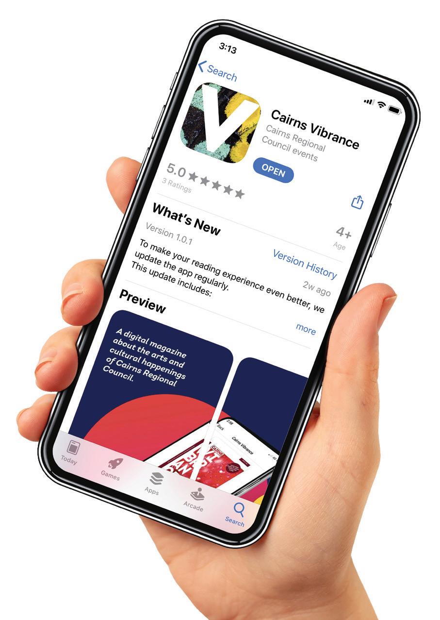 This publication is written, designed and produced by Creative Life, a branch of Cairns Regional Council. Where indicated, content such as reviews, interviews and outcome reports are contributed by third parties and should not be considered as the official view of Cairns Regional Council. No part of this magazine may be reproduced in part or in whole in any way without permission. All images are copyright Cairns Regional Council unless otherwise credited. All information is correct at time of printing but may be subject to change.
