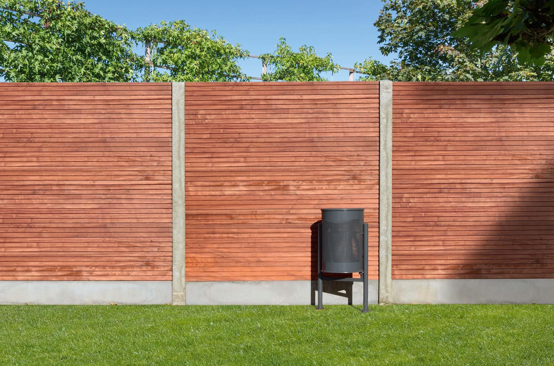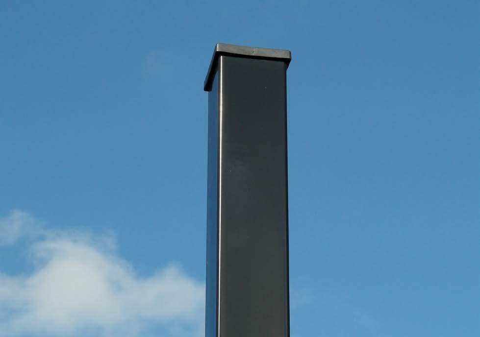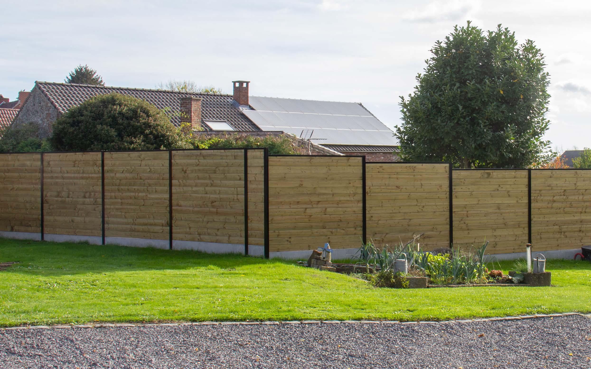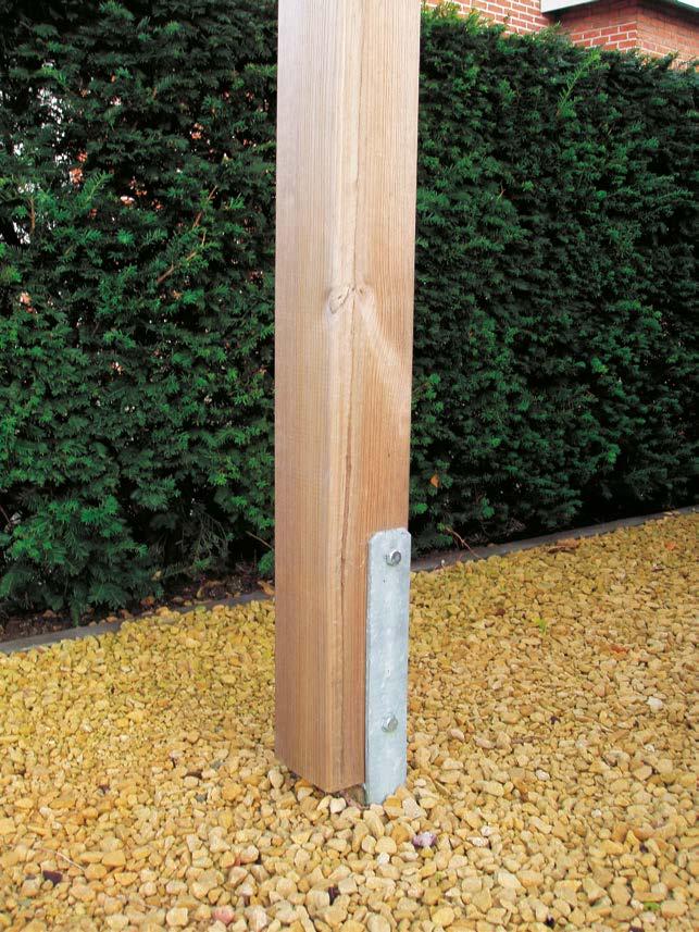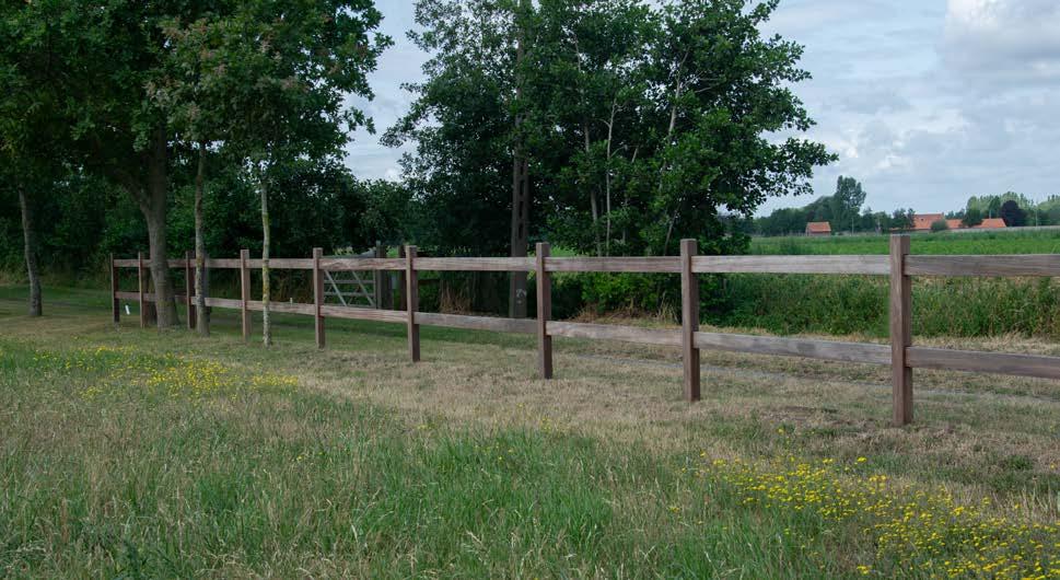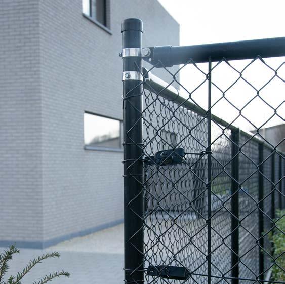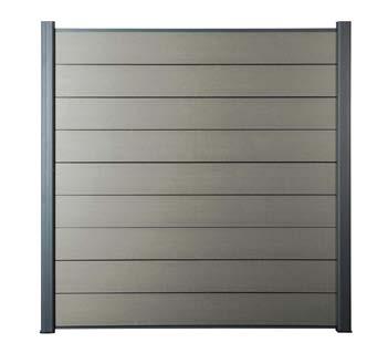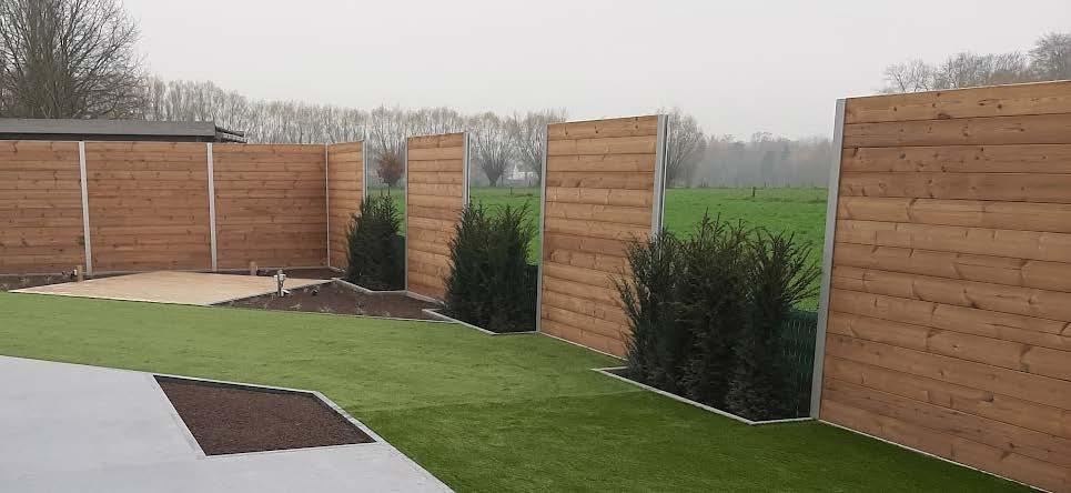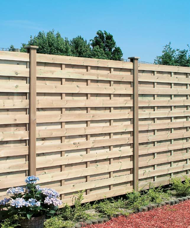 • Wordt bevestigd met houtschroeven aan volle houten palen of met 6 beugels aan metalen palen of zonder zichtbare palen.