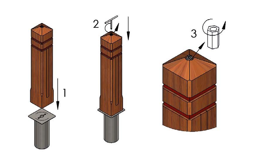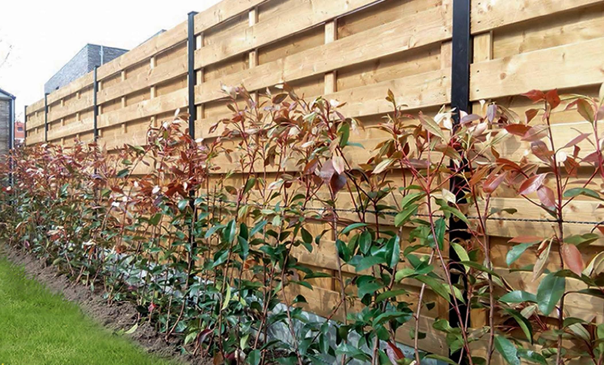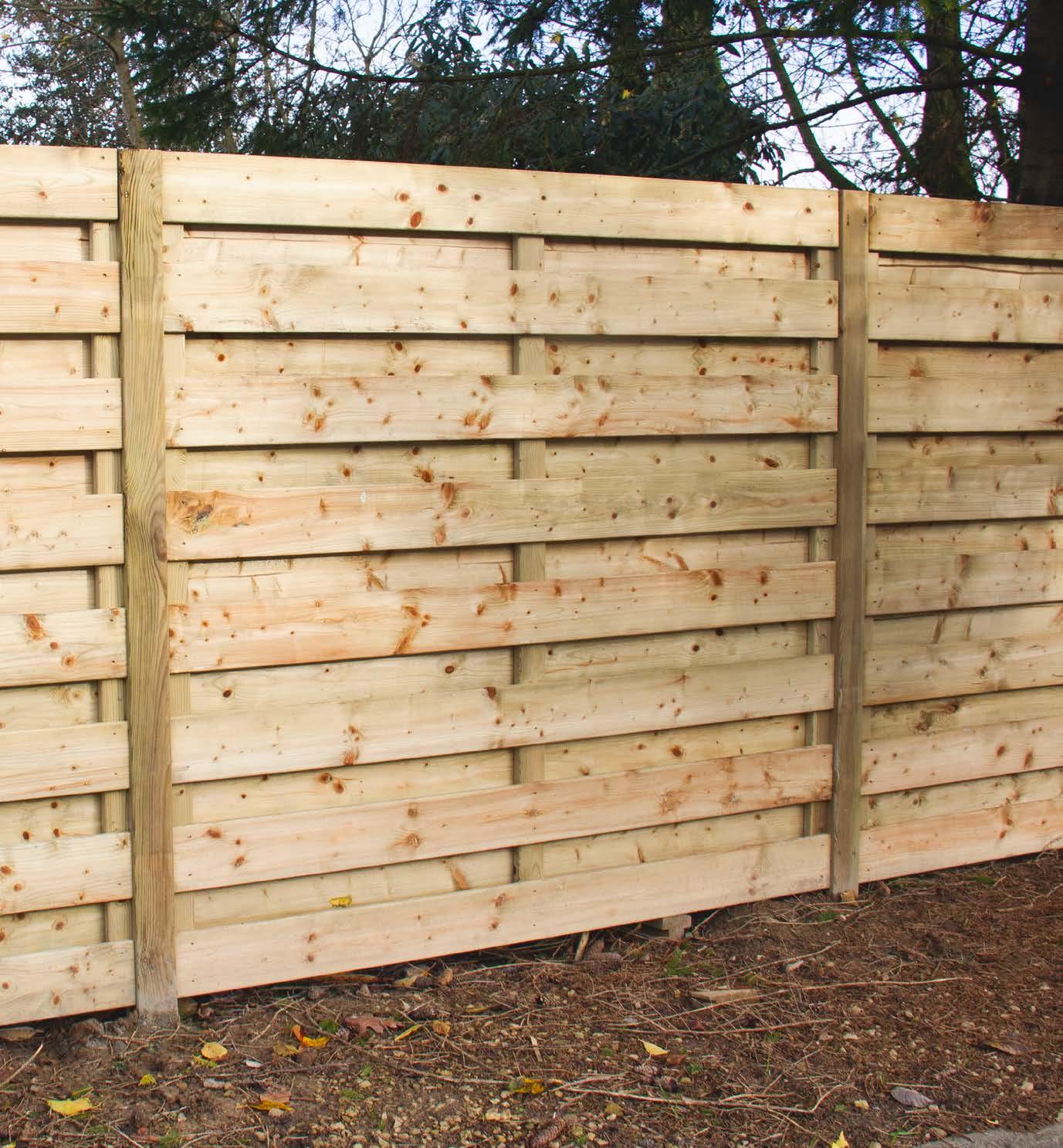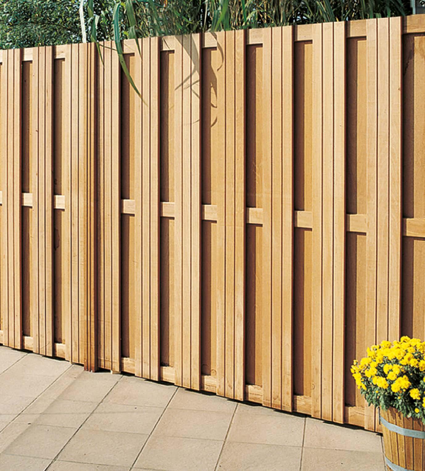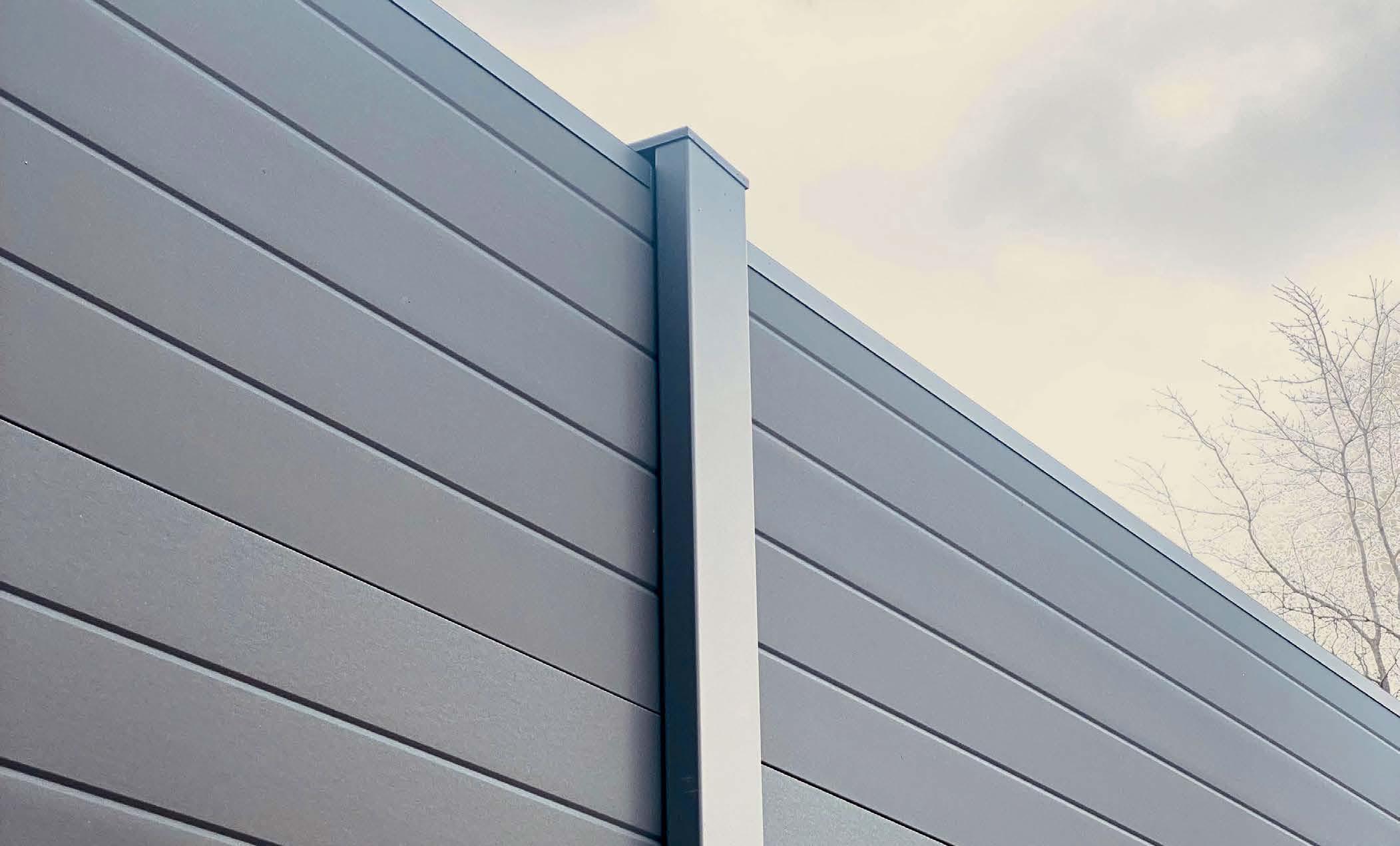 • Wordt bevestigd met houtschroeven aan volle houten palen of met 6 beugels aan metalen palen of zonder zichtbare palen.