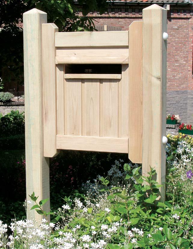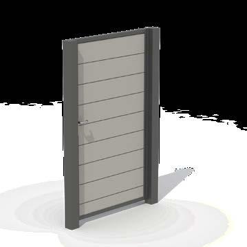 4 5 D eur met inwerkslot en cilinder. Verstelbare scharnieren. Pen- en gat verbinding. De plaats van de deur is vrij te bepalen in de korte zijde. Draairichting rechts naar voren. Een dubbele deur is mogelijk op aanvraag. H oekpaal met inkeping 12 x 12 cm