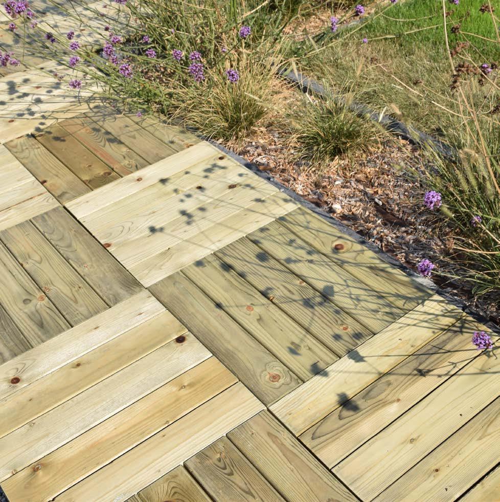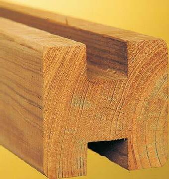 • Grenen drukgeïmpregneerd, padouk of afromosia