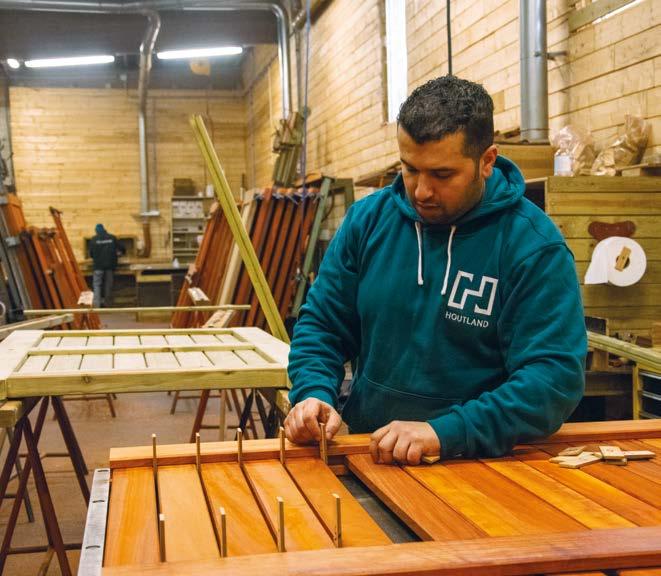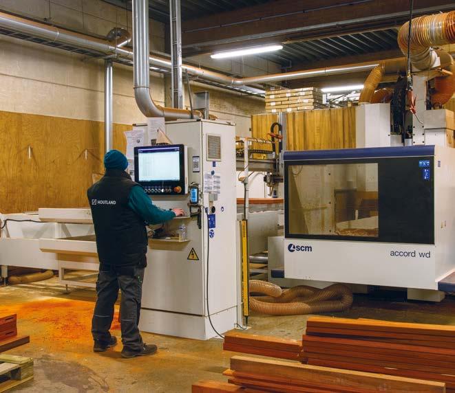 H OUTLAND schaaft het hout volledig zelf. Alles gebeurt volautomatisch en computergestuurd om perfecte maatvoering en kwaliteit te garanderen.