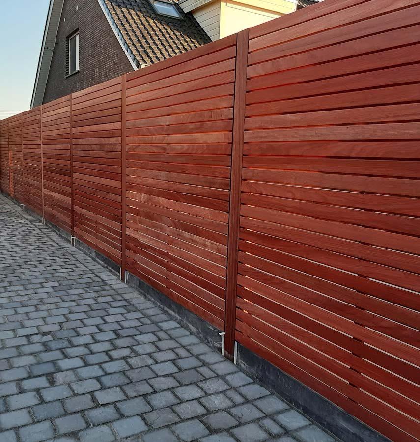 • Zéér duurzame harde Afrikaanse houtsoort met roodbruine kleur die na korte tijd mooi vergrijst.