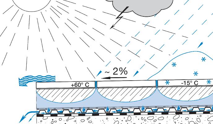 onder balkon- en terrasbekledingen, met dubbele drainagefunctie, scheidt de bekleding van de ondergrond:
