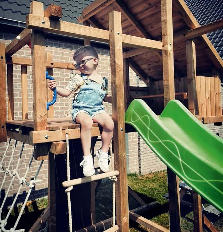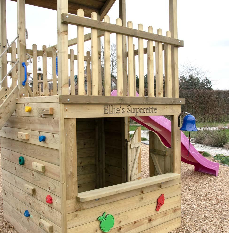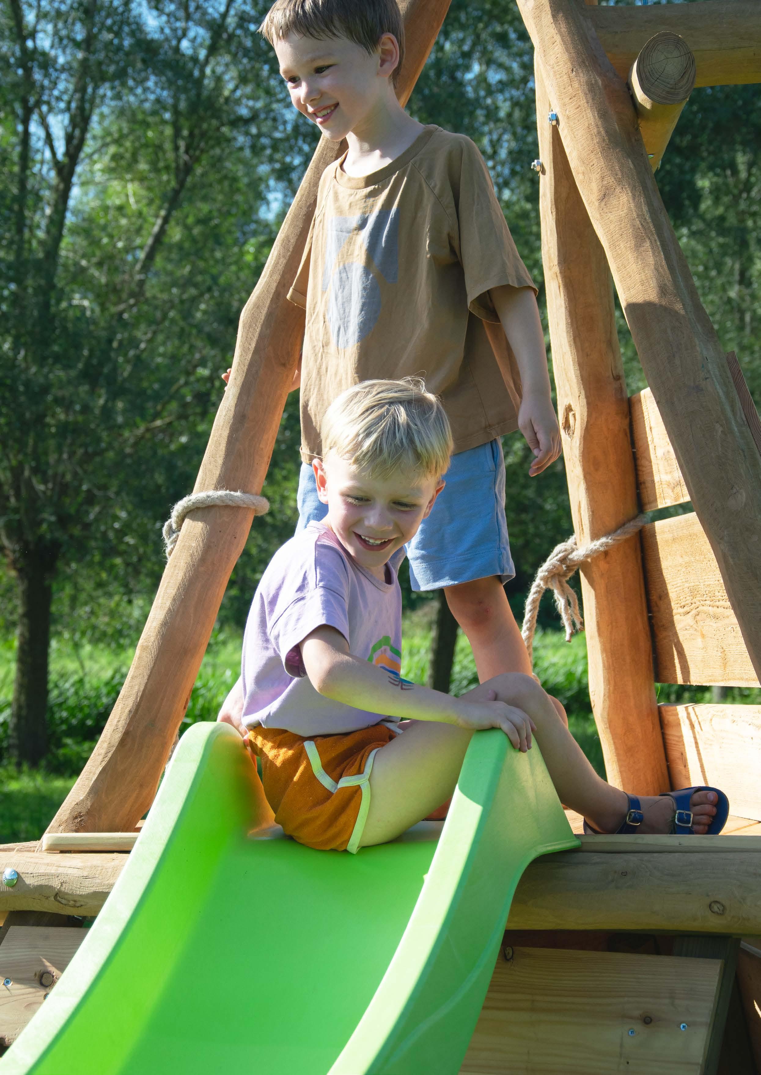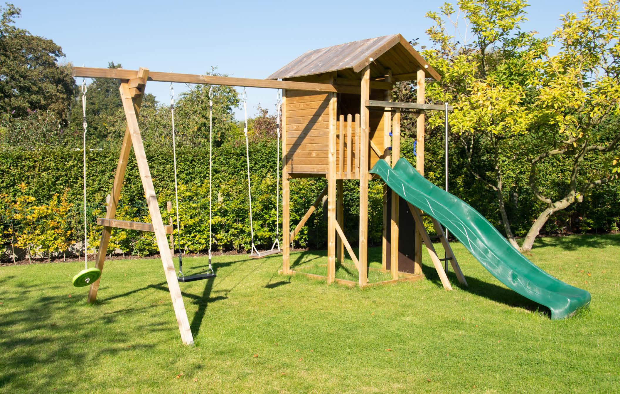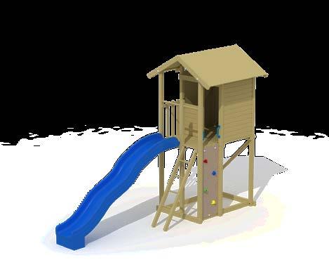• D e glijbaan is niet inbegrepen maar om veiligheidsredenen wel verplicht aan te schaffen bij het speeltoestel.