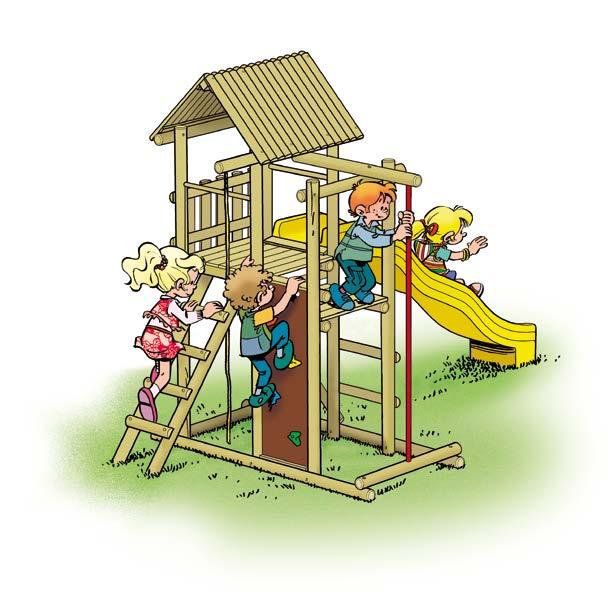 • Een glijbaan, een aanbouwschommel (0501, 0502, 0516) en 4 grondankers zijn niet inbegrepen maar wel verplicht aan te schaffen bij het speeltoestel omwille van veiligheidsredenen en stabiliteit.