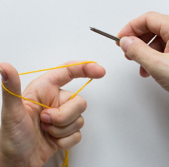 * Consejo: Enrolla el hilo alrededor de la aguja tantas veces como puntos necesites montar, añadiendo unos 15 a 20 cm adicionales para asegurarte de que no te falte hilo.