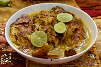 C’est une soupe de poisson mijotée avec de l’ail, du piment, des oignons, et servie avec du citron. On l’accompagne le plus souvent de bata-bata (= des bananes vertes, du manioc ou du fruit à pain frits dans de l’huile)